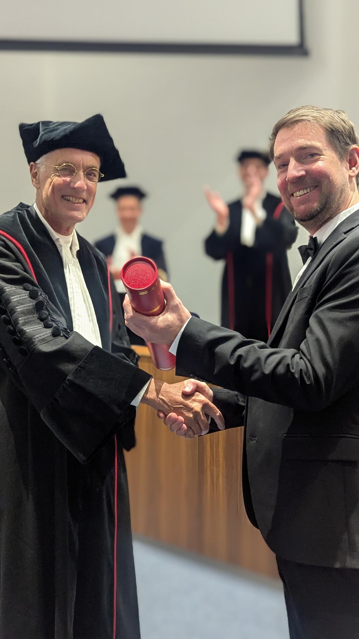 On Wednesday, Nov. 12, 2025, Joren Jacobs, supported by his Paranymphs, Dr Daan Boezeman and Dr Henk-Jan Kooij, successfully defended his PhD thesis before a panel of five distinguished examinors consisting of Prof. Sander Meijerink, Prof. Marc Redepenning, Prof. Angelique Chettiparamb, Prof Raoul Beune and Assoc. Prof. Martijn Duineveld.